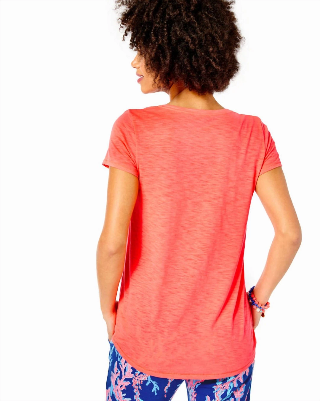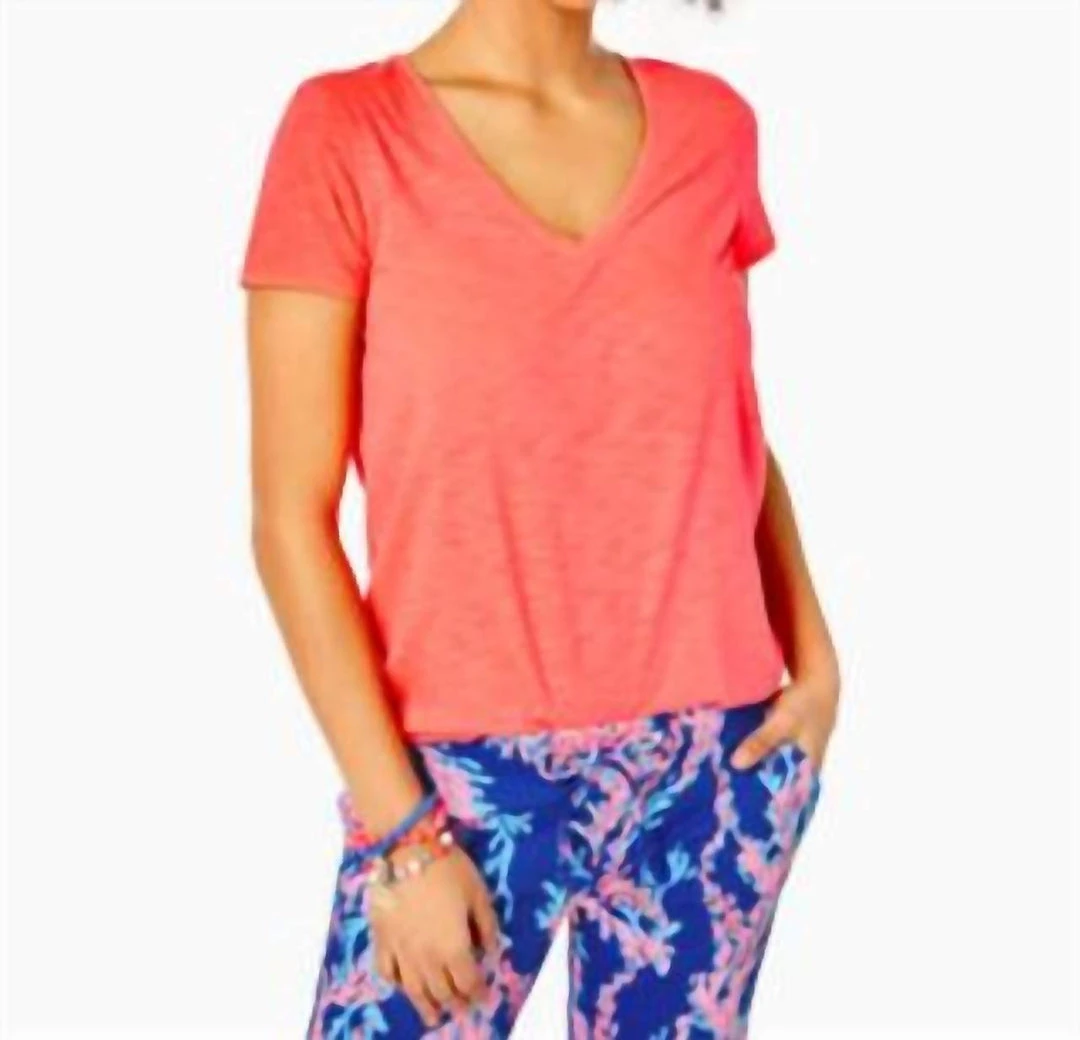 Easy fit, short sleeve, pullover, washed slub tee with v-neck.Some colors are more vibrant in person.Skims the body. Roomier fit.Palm Beach SlubMachine wash cold, delicate cycle.Imported.SKU – ��005673