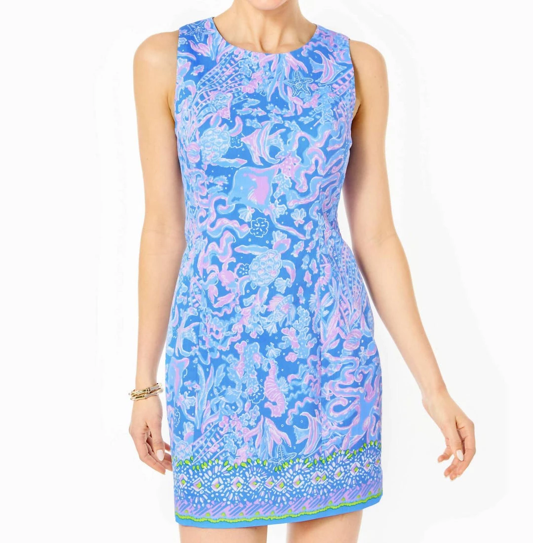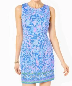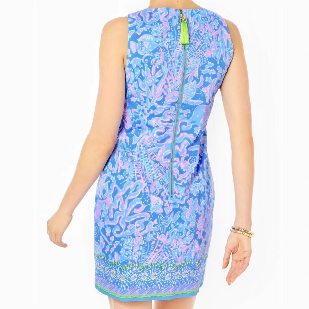 Straight fit, bra-friendly crewneck shift dress with exposed back metal zipper with novelty puller and pop color tassel.36″ From top of shoulder to hem (based on a size small/4).Length – Above the knee.Fits against body at chest and hip with more room at the waist.Built-in lingerie snaps make this dress bra-friendly.Stretch Vintage Dobby Machine wash cold, separately, delicate cycle.Imported.SKU – รย 006340