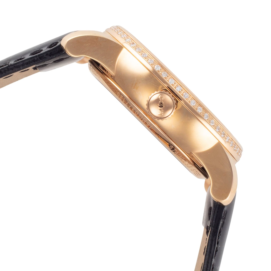 The case is made of durable Stainless Steel. The case width is 33mm and the dial is protected by a Sapphire Crystal Scratch Resistant. It’s water resistant up to 50 m (165 feet). The Strap is Black Leather and the dial is Silver. The movement is Automatic.