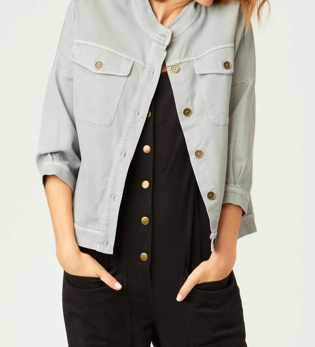A true shaket, Jacy brings it home with oversized breast pockets, 3/4 sleeves and a back adjustable cinched waist. Chelsea Stretch TwillCenter Front – ~18.5″Center Back – ~21.75″Color Description – Light cool greyPreshrunk.Machine washable.Imported.